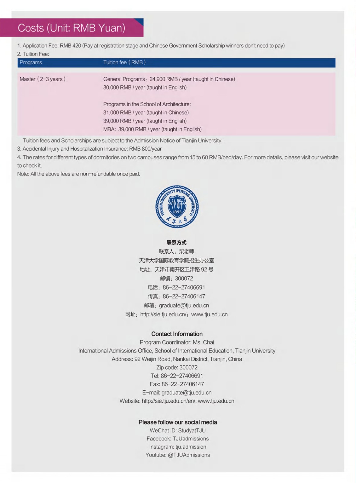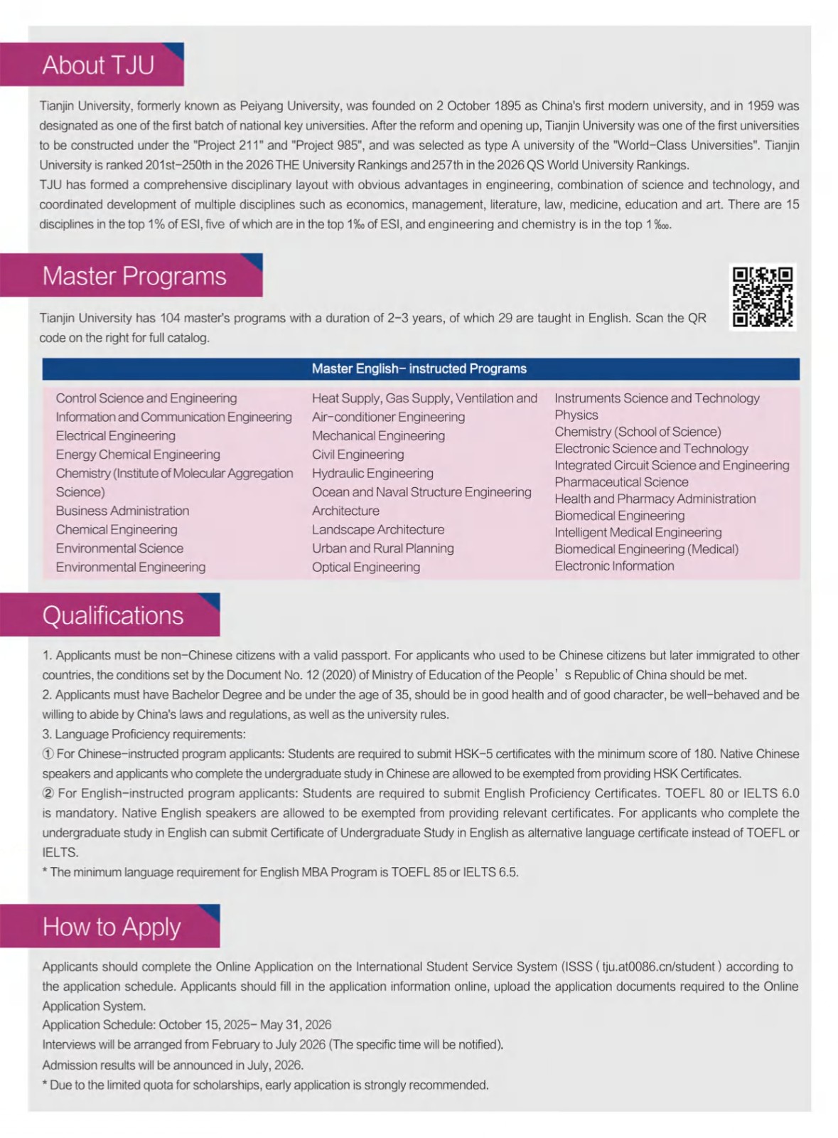 Admission to Master Programs of Tianjin University 2026