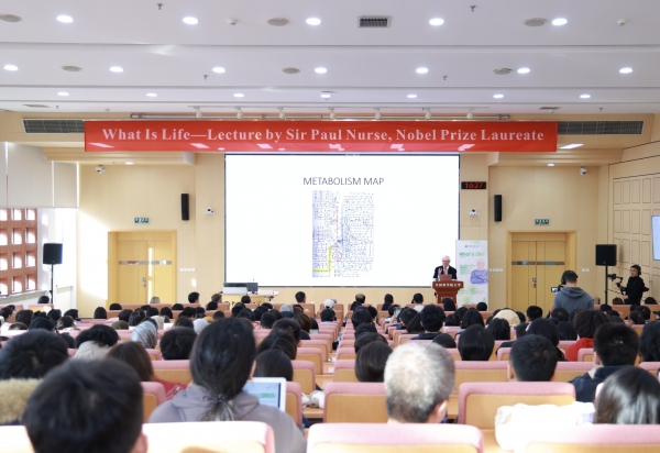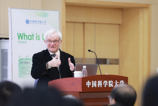 During the lecture Sir Paul Nurse delivered the speech Zhou Qi hosted the lecture Sir Paul Nurse exchanged ideas with students More information: In September 2013, Sir Paul Nurse was invited to speak at the UCAS China Sciences and Humanities Forum, delivering a report titled “Making Science Work”. Following the speech, UCAS conferred on him the title of honorary professor and presented the certificate to him.